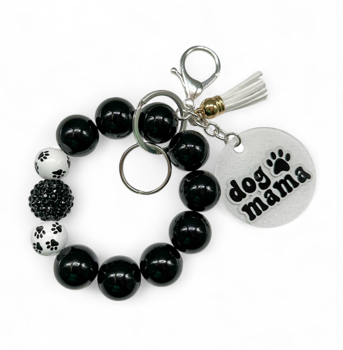 Keep it classic with the Black Dog Mom Wristlet Keychain. The sleek black beads and glitter “Dog Mama” charm create a timeless look that pairs with any style. Handmade with durable details and bubblegum beads, it’s lightweight yet strong. A versatile gift for dog moms who love chic, everyday essentials.