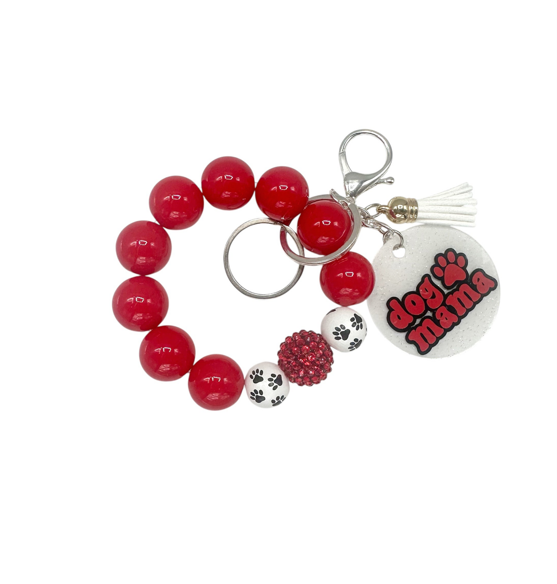 Make a bold statement with our Red Dog Mom Wristlet Keychain. The vibrant red beads and glitter “Dog Mama” charm create a striking accessory that’s full of energy. Designed to keep your keys and bags secure, this wristlet is both stylish and practical. A passionate gift for dog moms who love flair with function.