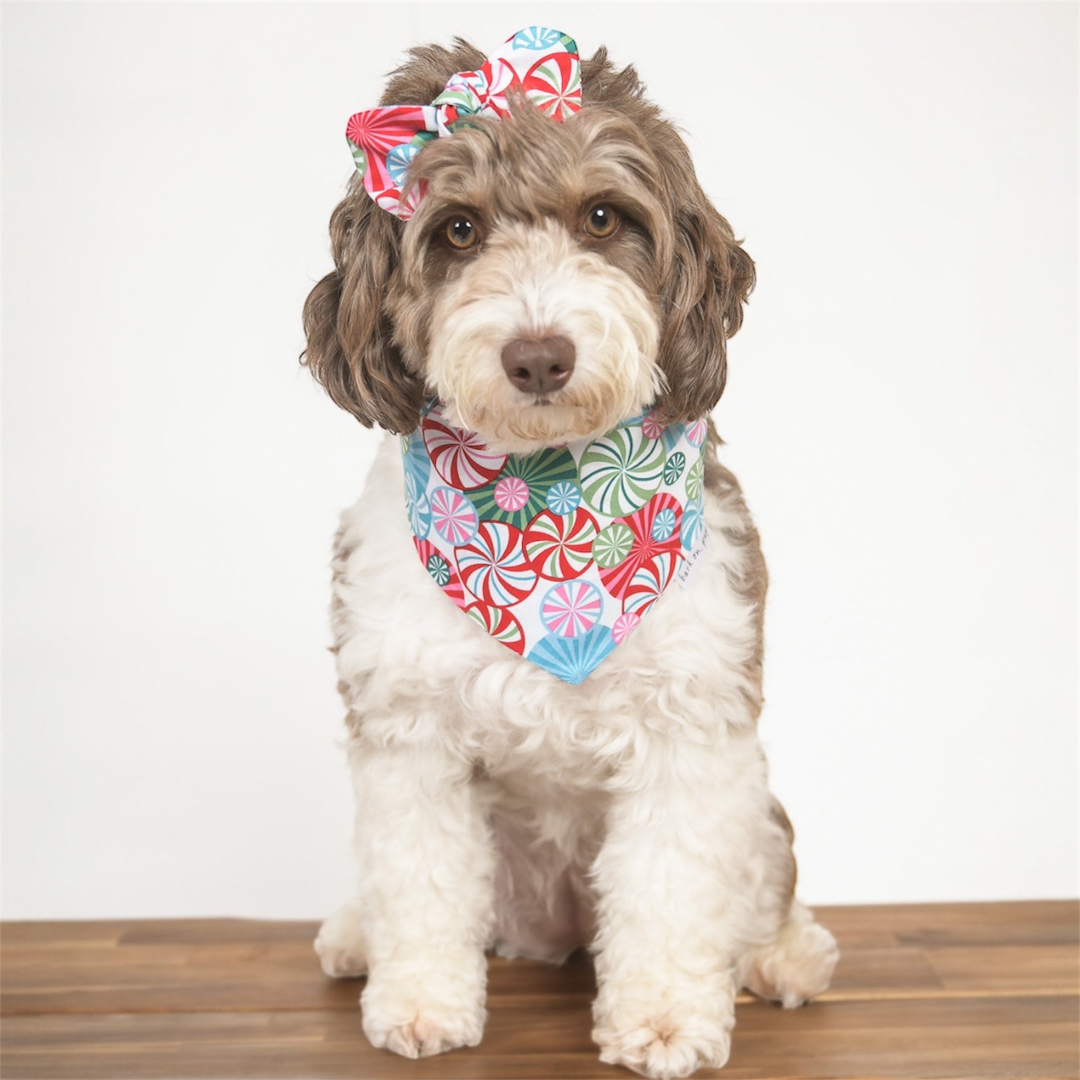 Sweeten up your pup’s holiday look with our Peppermint Swirl Christmas Dog Bandana. Covered in a classic red-pink-green and white candy swirl print, this festive bandana is perfect for Christmas photos, winter walks, holiday parties, or gifting to fellow dog lovers.