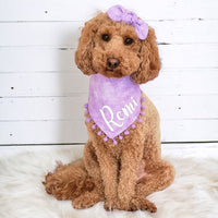 Personalized Lavender Floral with Pom Pom Dog Bandana