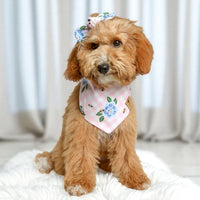 This gingham floral dog bandana blends sweet pink checks with dainty florals for a charming spring look. Made from high quality cotton, it’s soft and breathable. Choose tie-on, snap-on, or over-the-collar style for a secure fit that suits your pup’s daily adventures. A sweet accessory and thoughtful gift for dog moms who love classic florals.