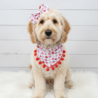 Valentine Candy Hearts Pom Pom Dog Bandana