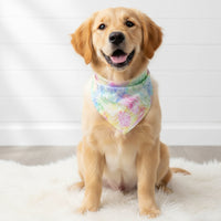 Add dreamy style with this watercolor pastel dog bandana, crafted from high quality cotton. Available in tie-on, snap-on, or over-the-collar styles, it’s soft and versatile. The watercolor pastel print brings a light, artsy look to everyday walks, playdates, or photo sessions. A charming gift for dog moms.